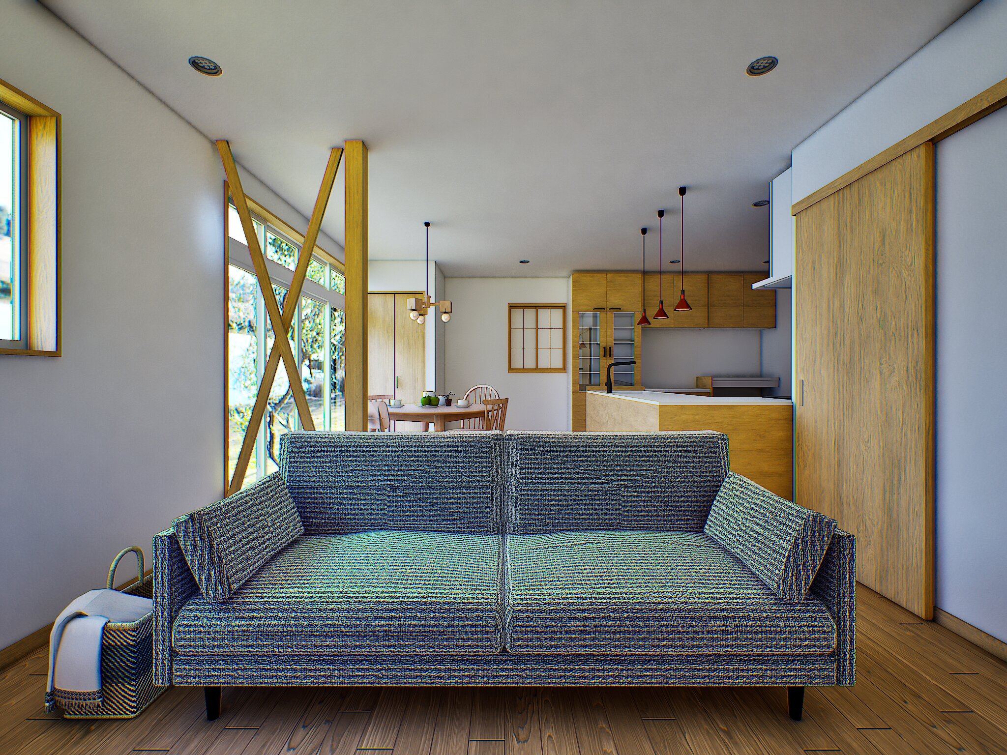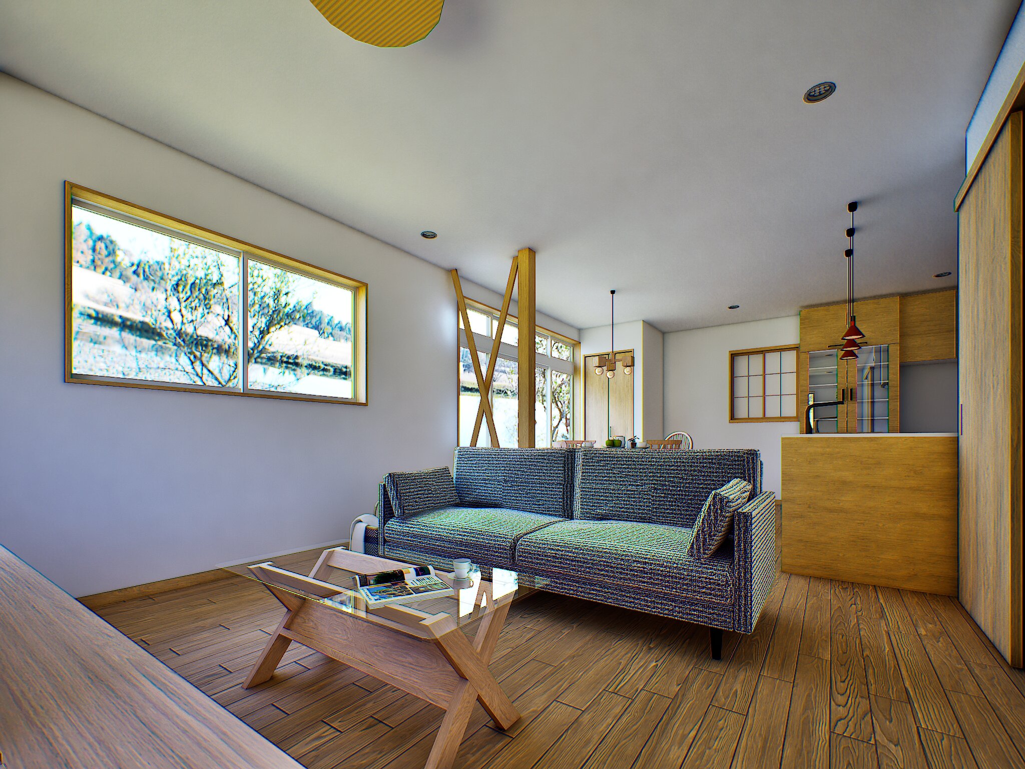 ※画像は完成予想図(イメージ)ですソファに腰掛けると、大きな窓からの光と木の質感が心をおだやかに整えてくれます。生活動線を整理したこの住まいは、家族が自然と集まる温かい場所になるはずです。